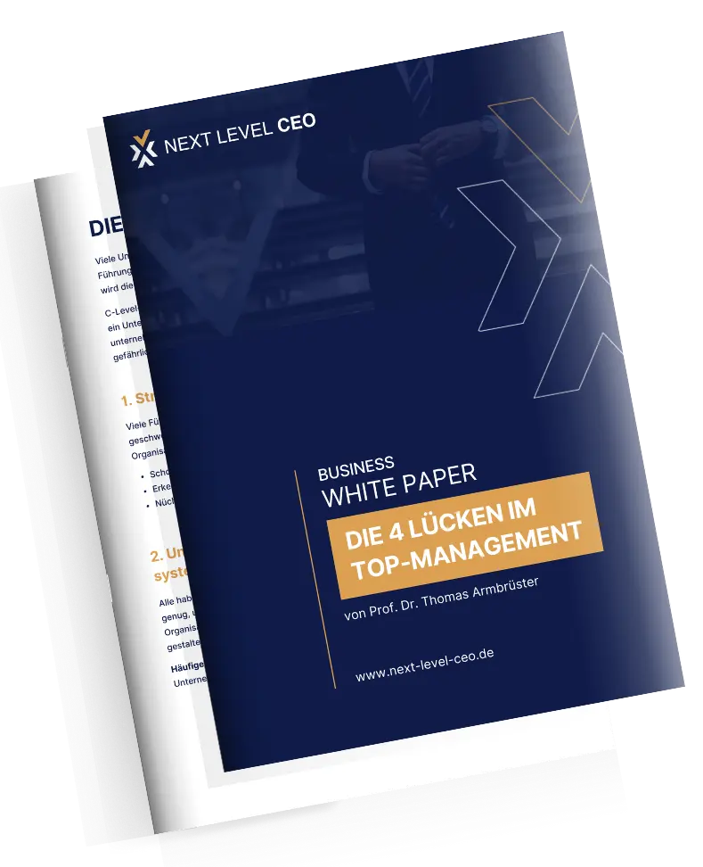 Erhalten Sie das vollständige Whitepaper per E-Mail und erfahren Sie, welche vier Lücken über Erfolg oder Misserfolg im Top-Management entscheiden.